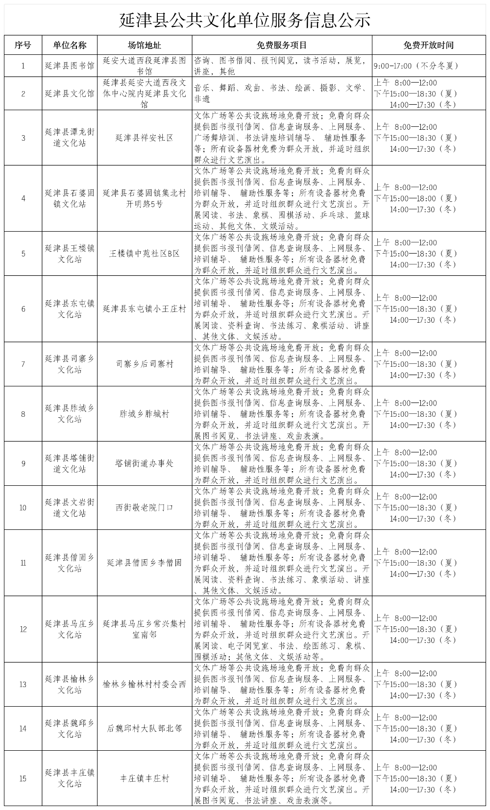 延津县公共文化单位服务信息公示