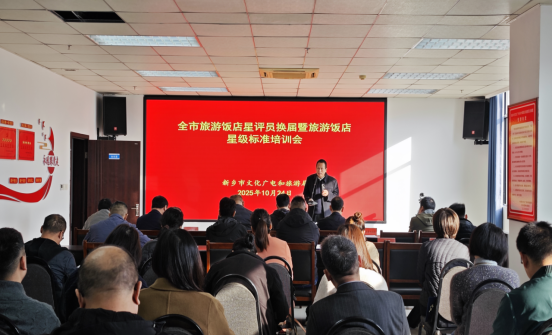 为进一步加强旅游饭店星评员队伍建设,提升旅游饭店行业服务质量与管理水平,10月24日全市旅游饭店星评员换届暨旅游饭店星级标准培训会在新乡市文化广电和旅游局召开。各县(市、区)文广旅局分管负责同志、星级旅游饭店管理人员、星评员候选人等60人参加了此次培训。