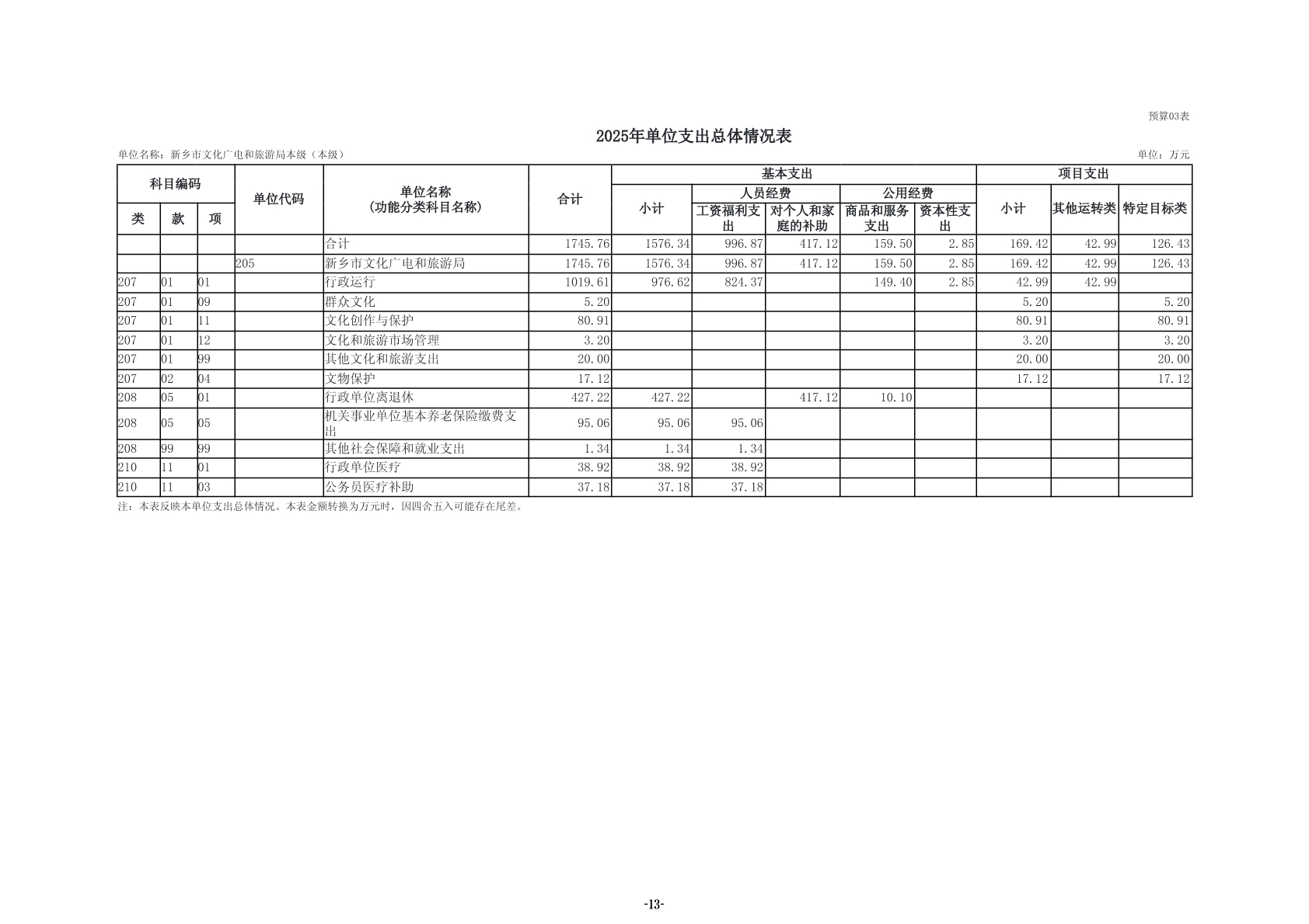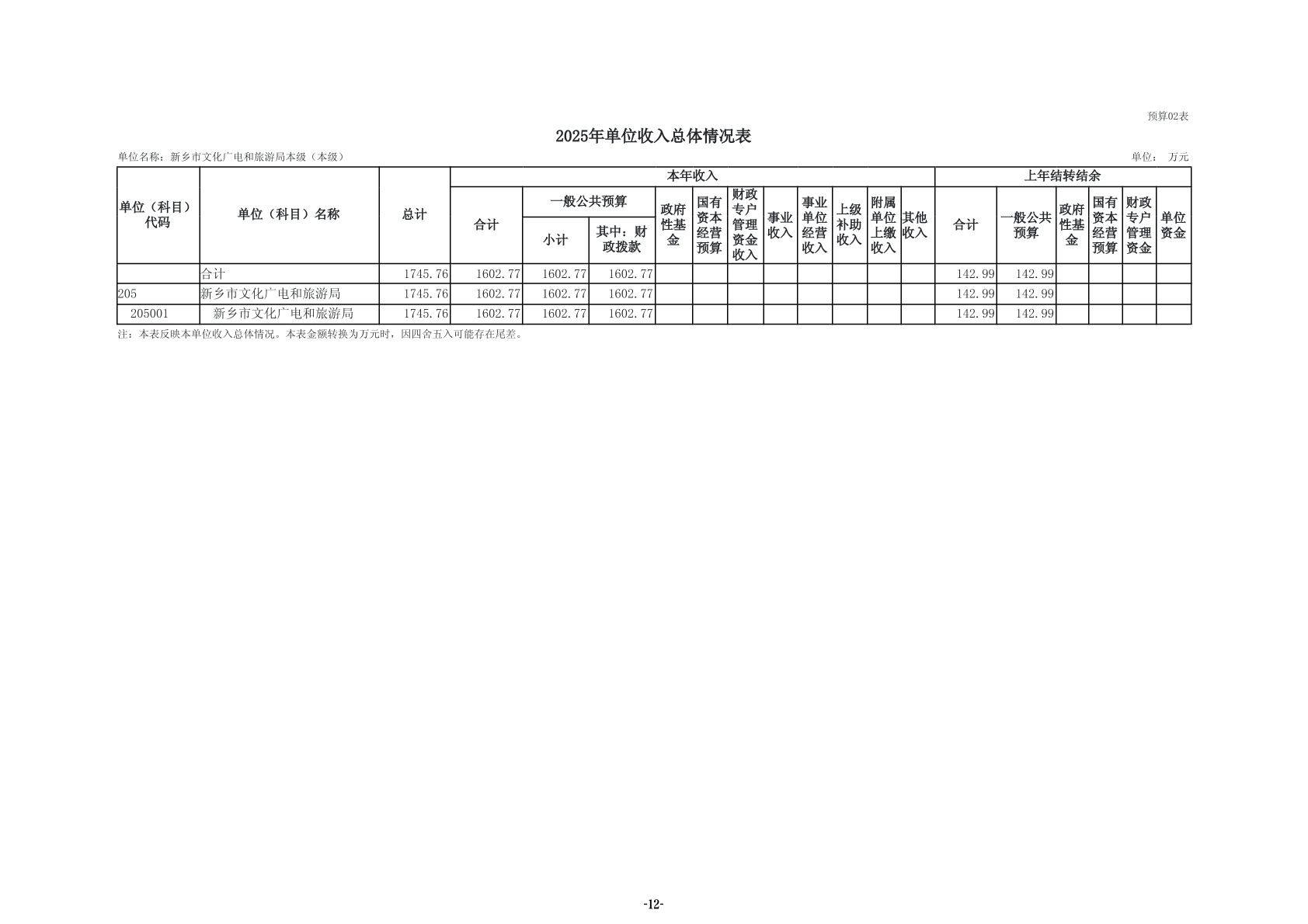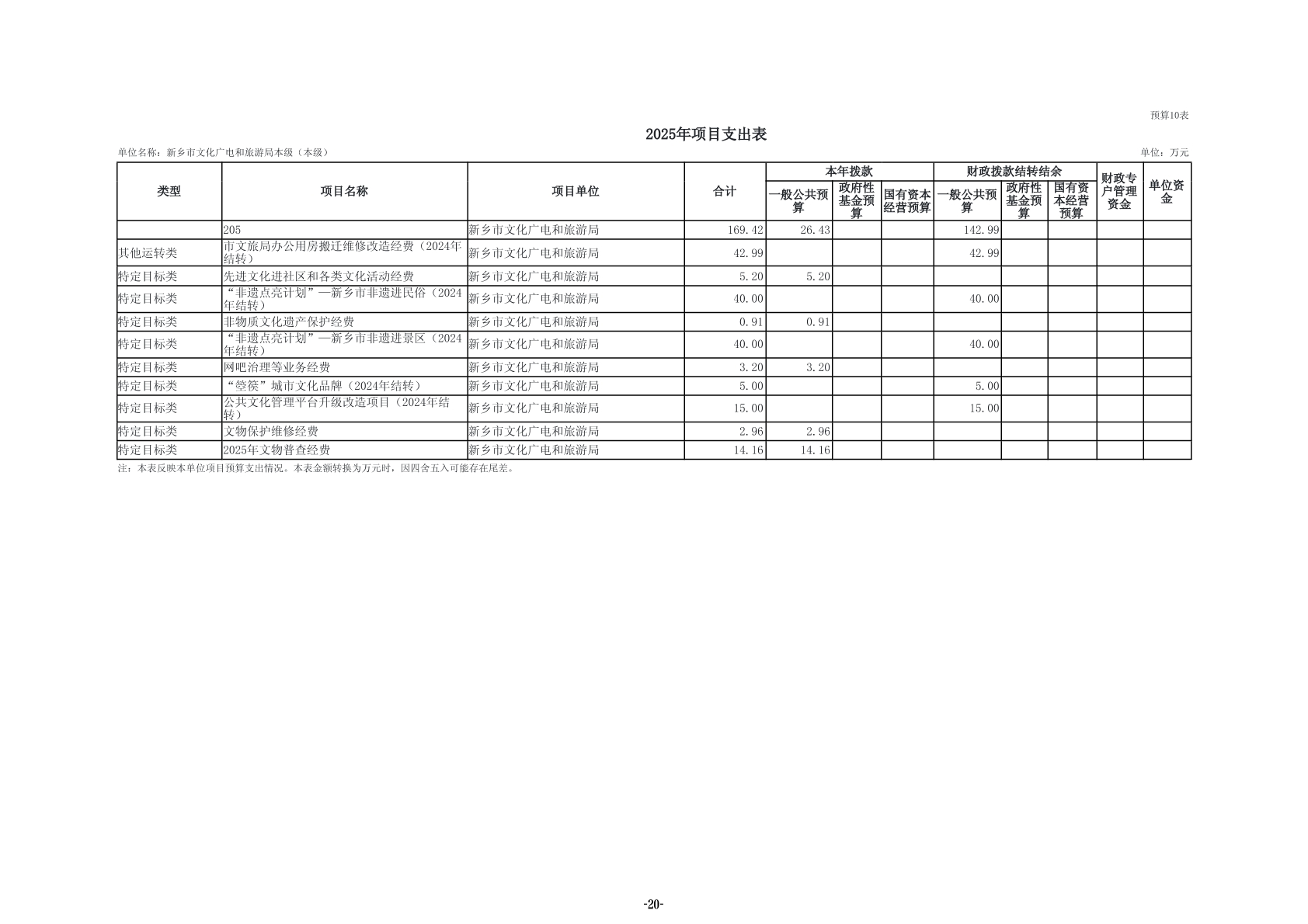 2025年度新乡市文化广电和旅游局(本级)单位预算