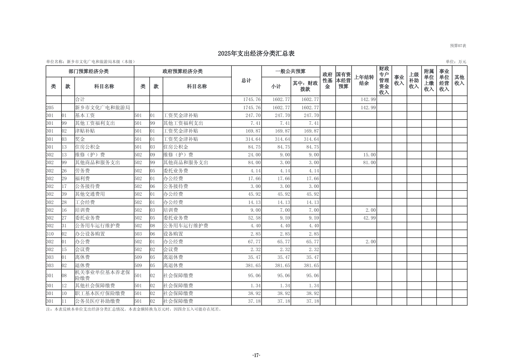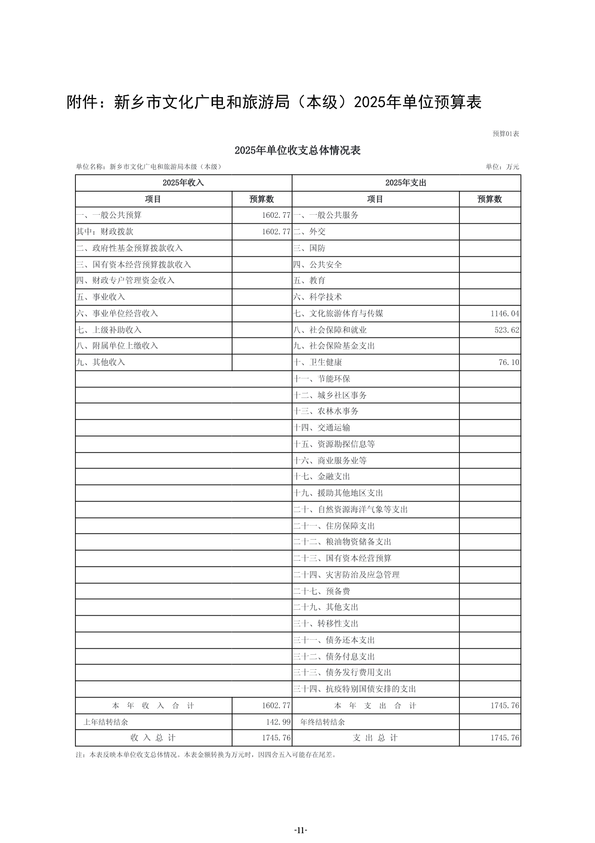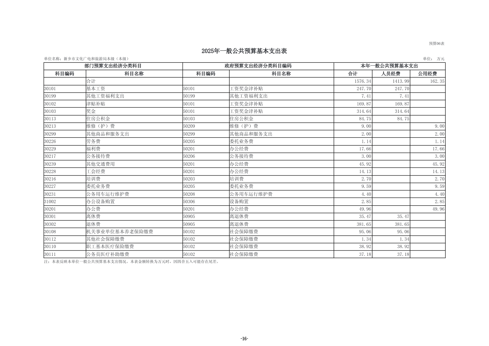 2025年度新乡市文化广电和旅游局(本级)单位预算