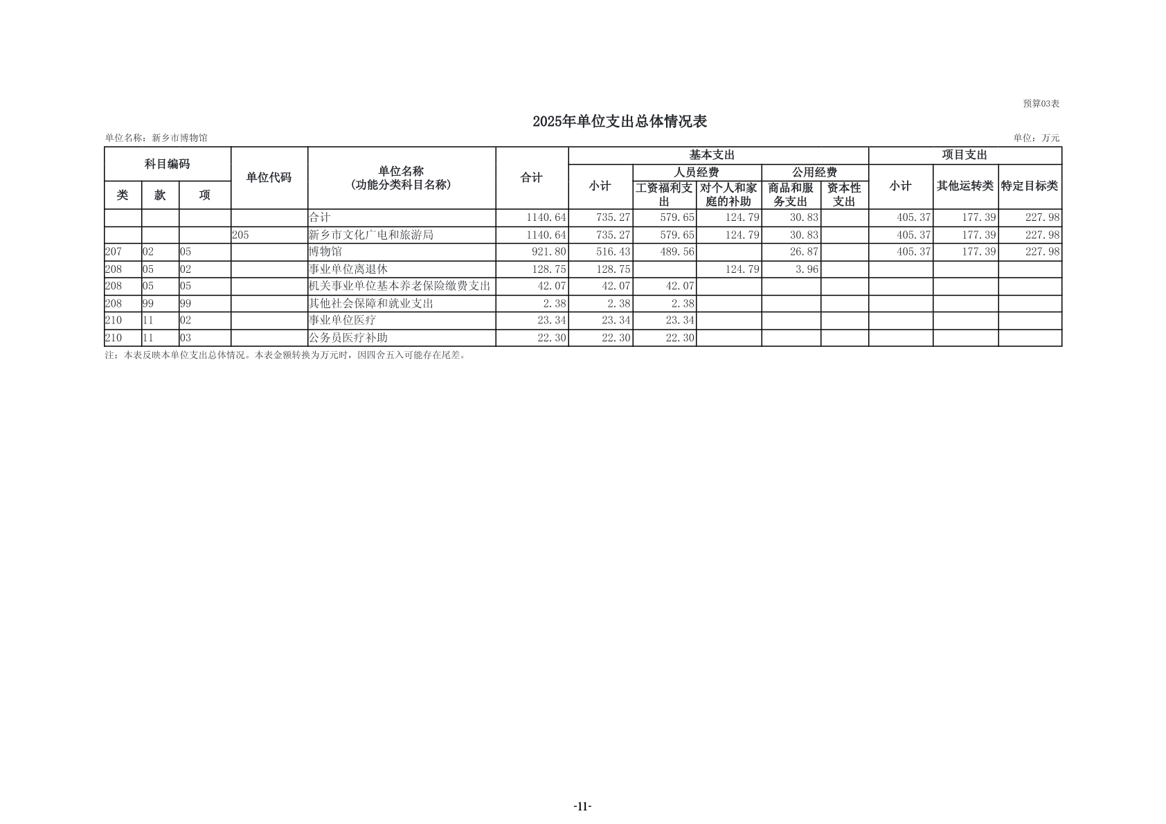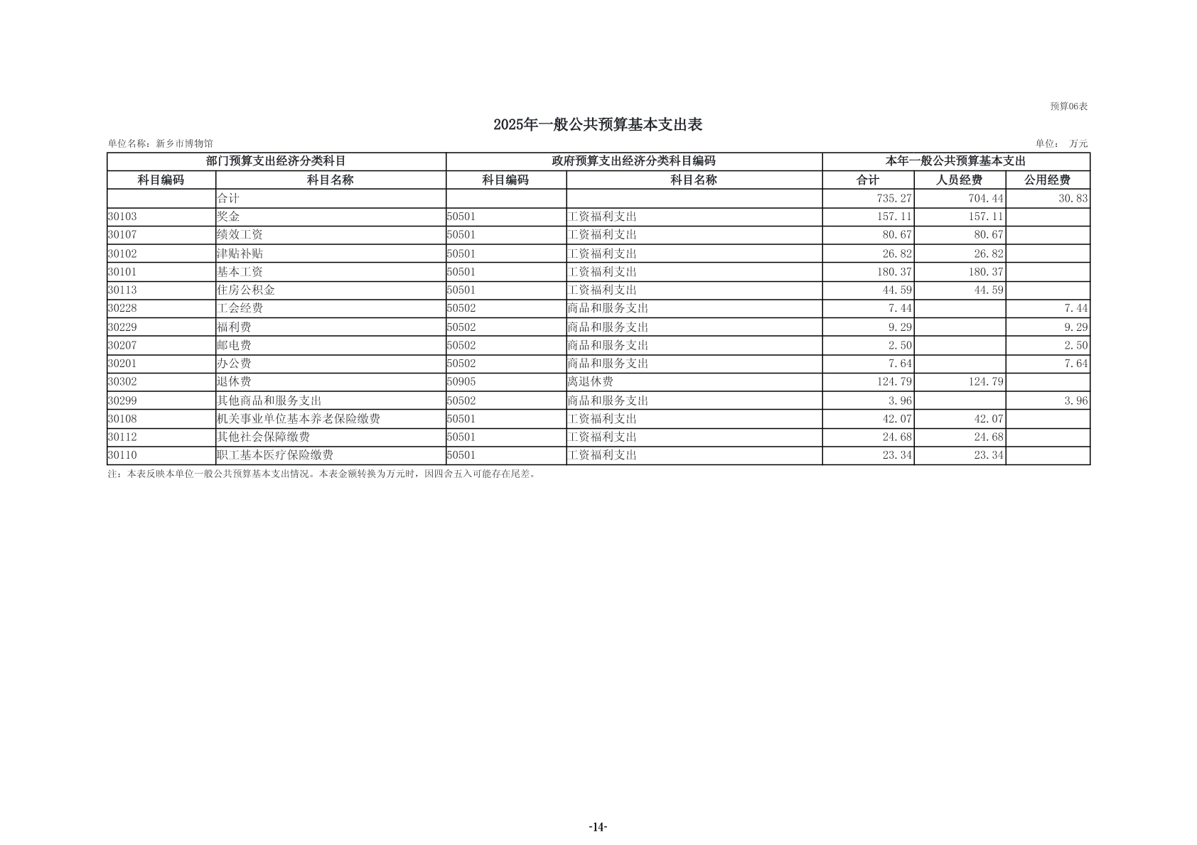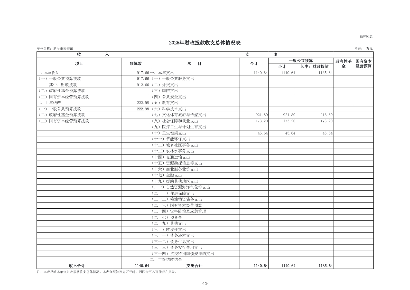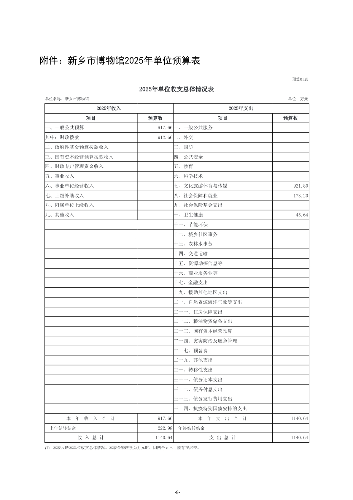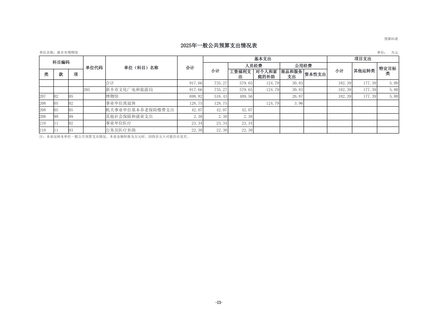 2025年度新乡市博物馆单位预算