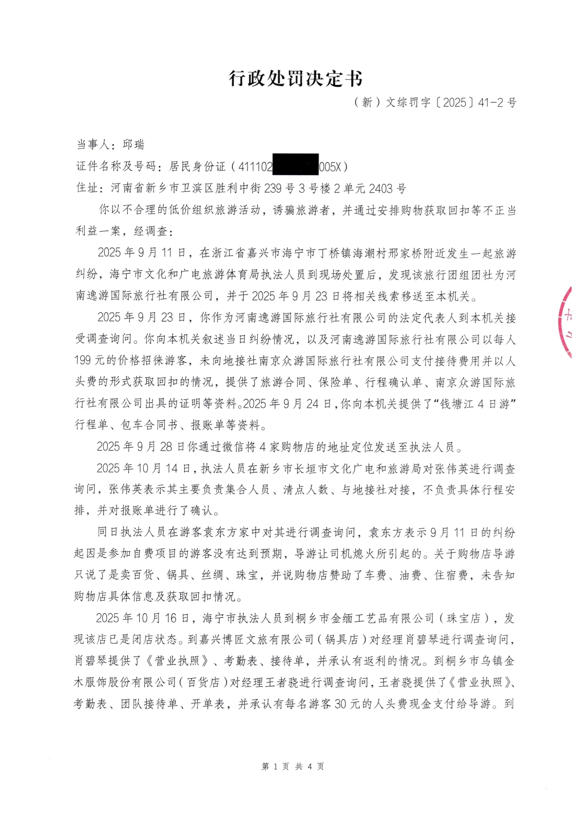 行政处罚决定书(新)文综罚字【2025】第41-2号