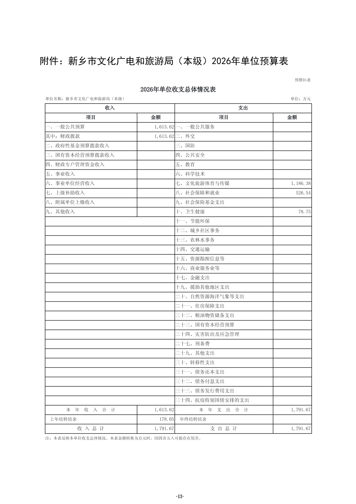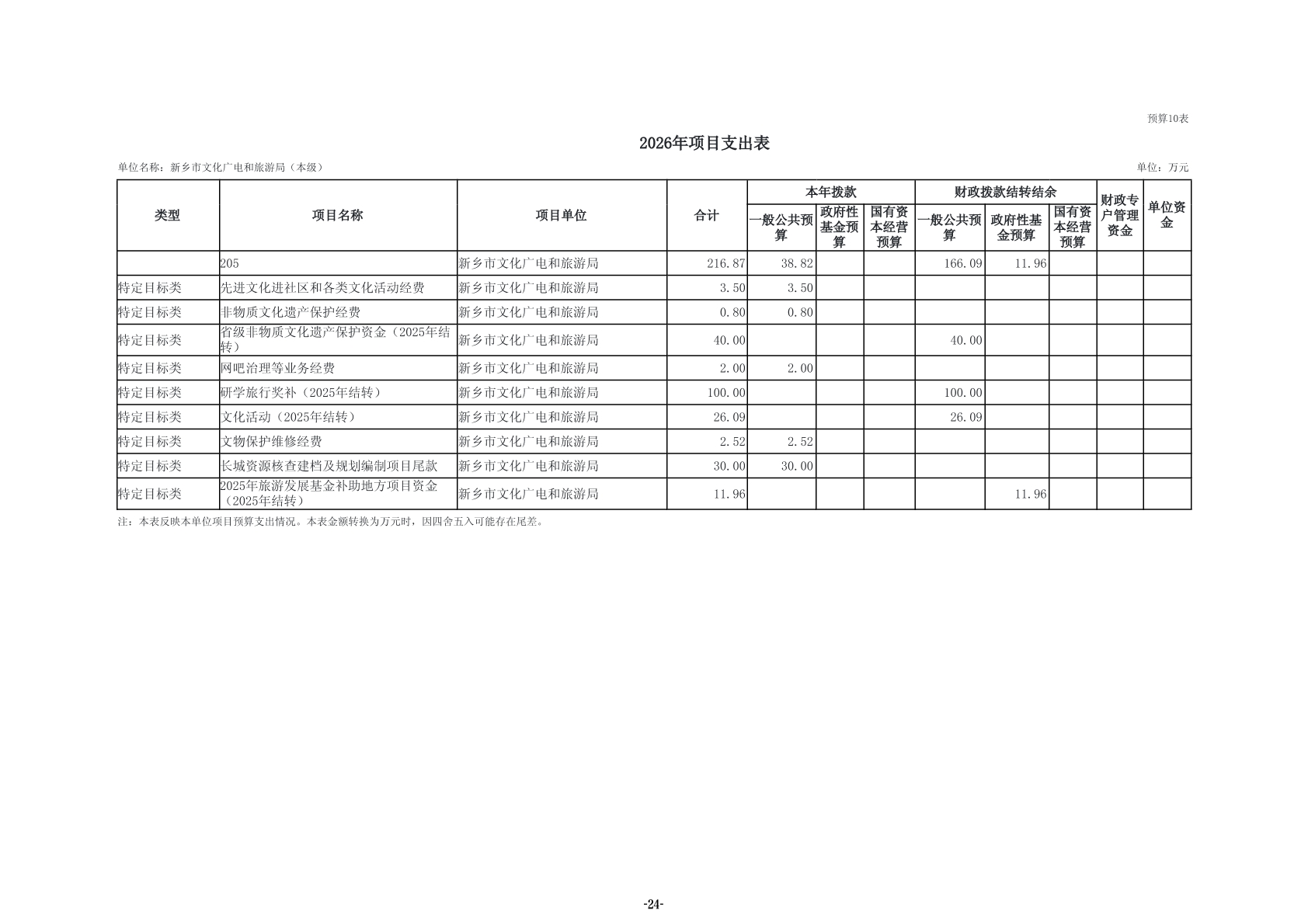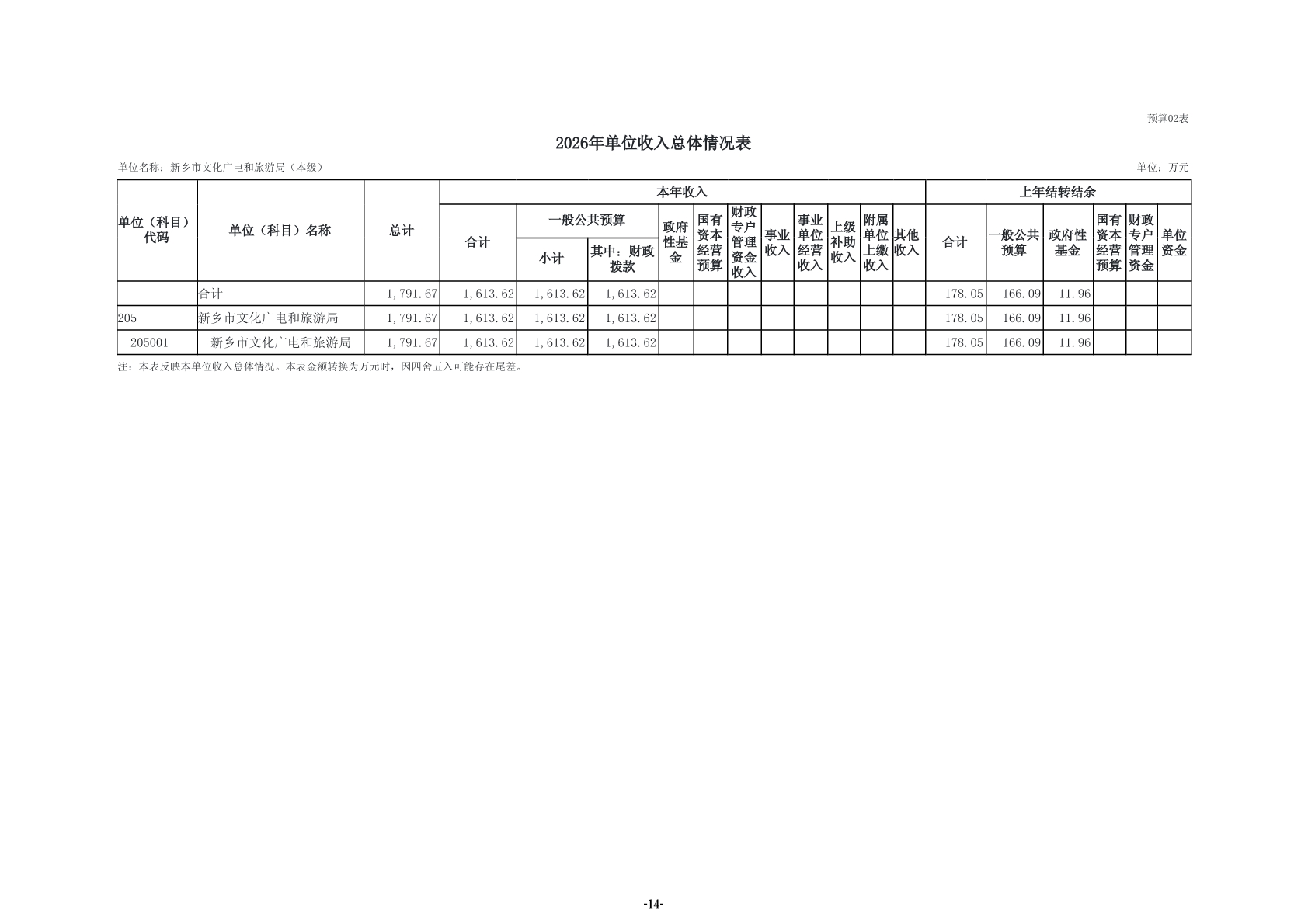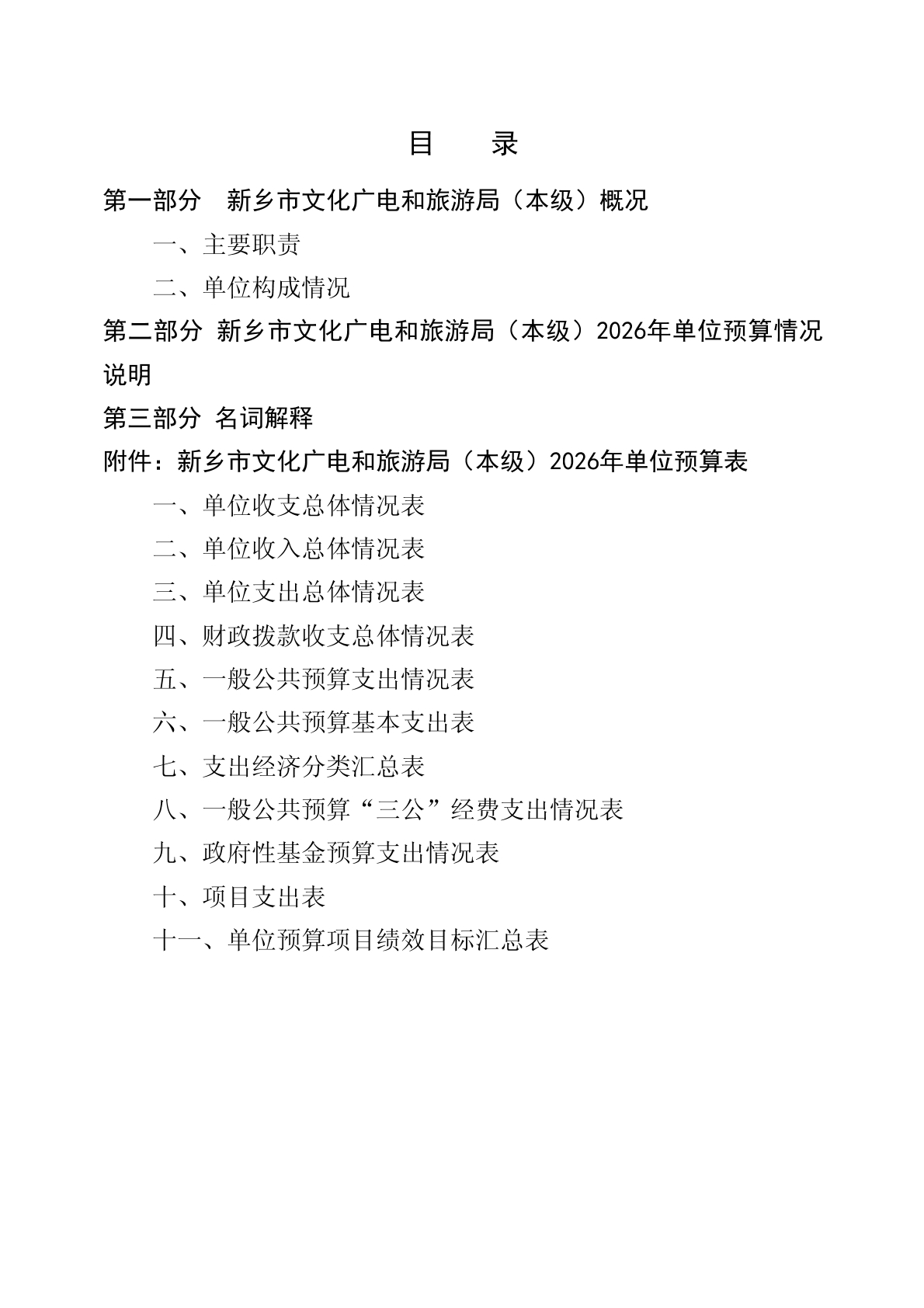 2026年度新乡市文化广电和旅游局(本级)单位预算