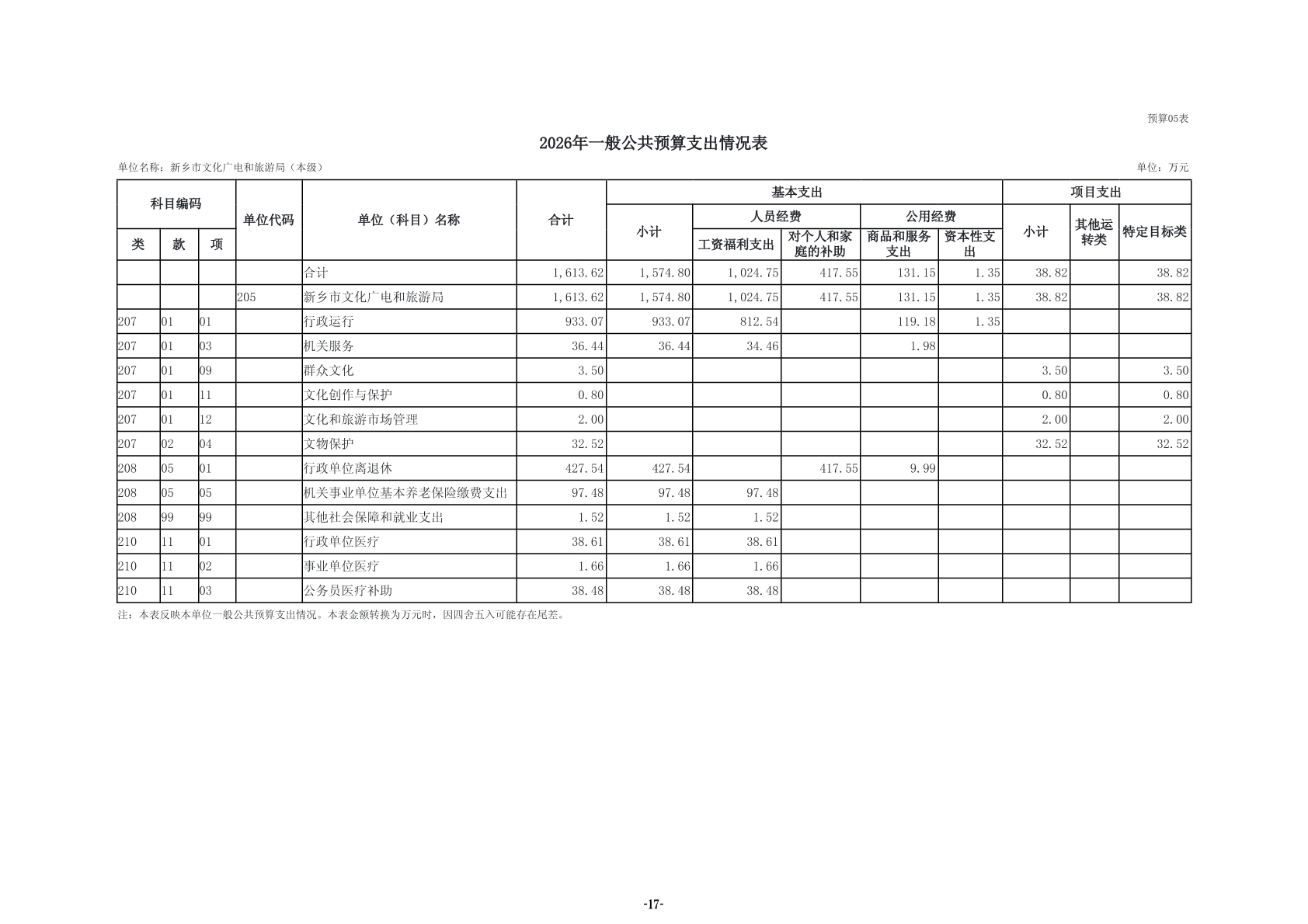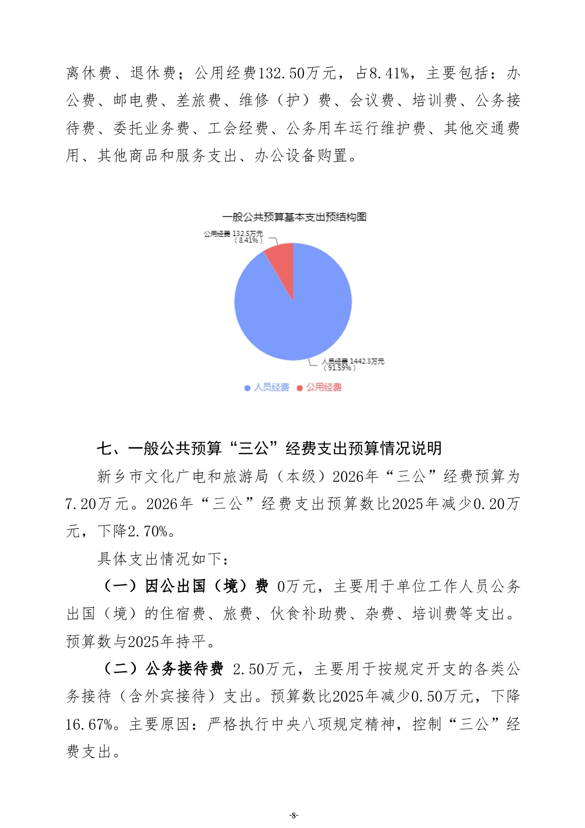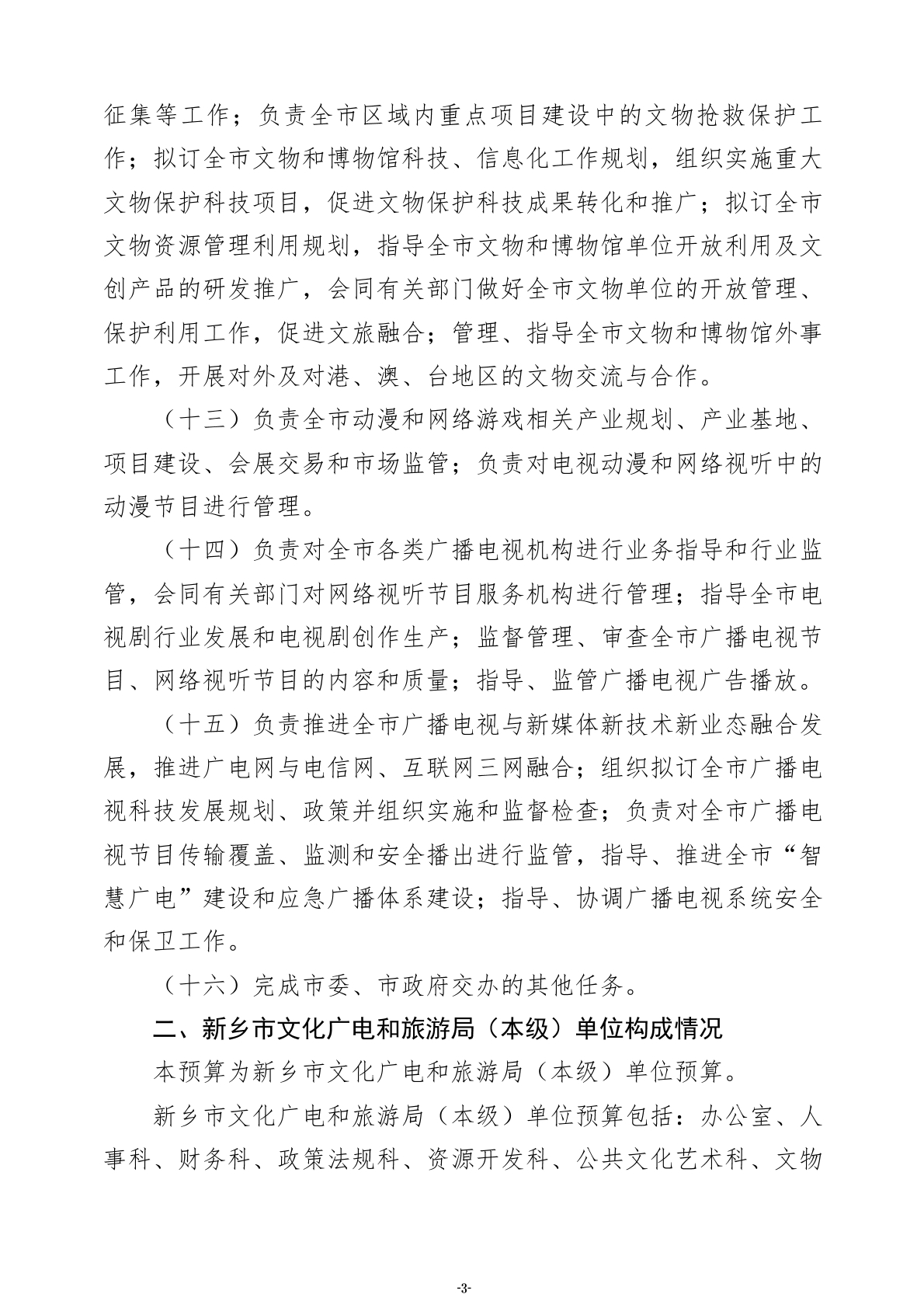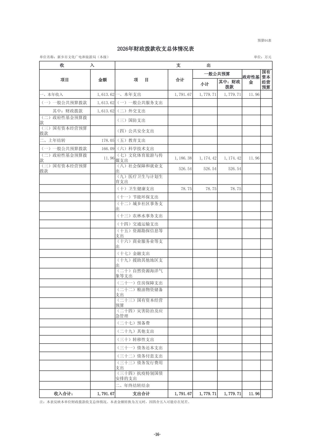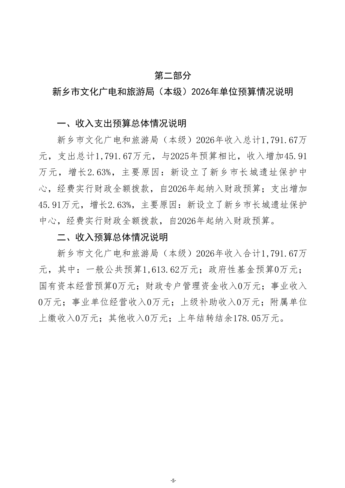 2026年度新乡市文化广电和旅游局(本级)单位预算