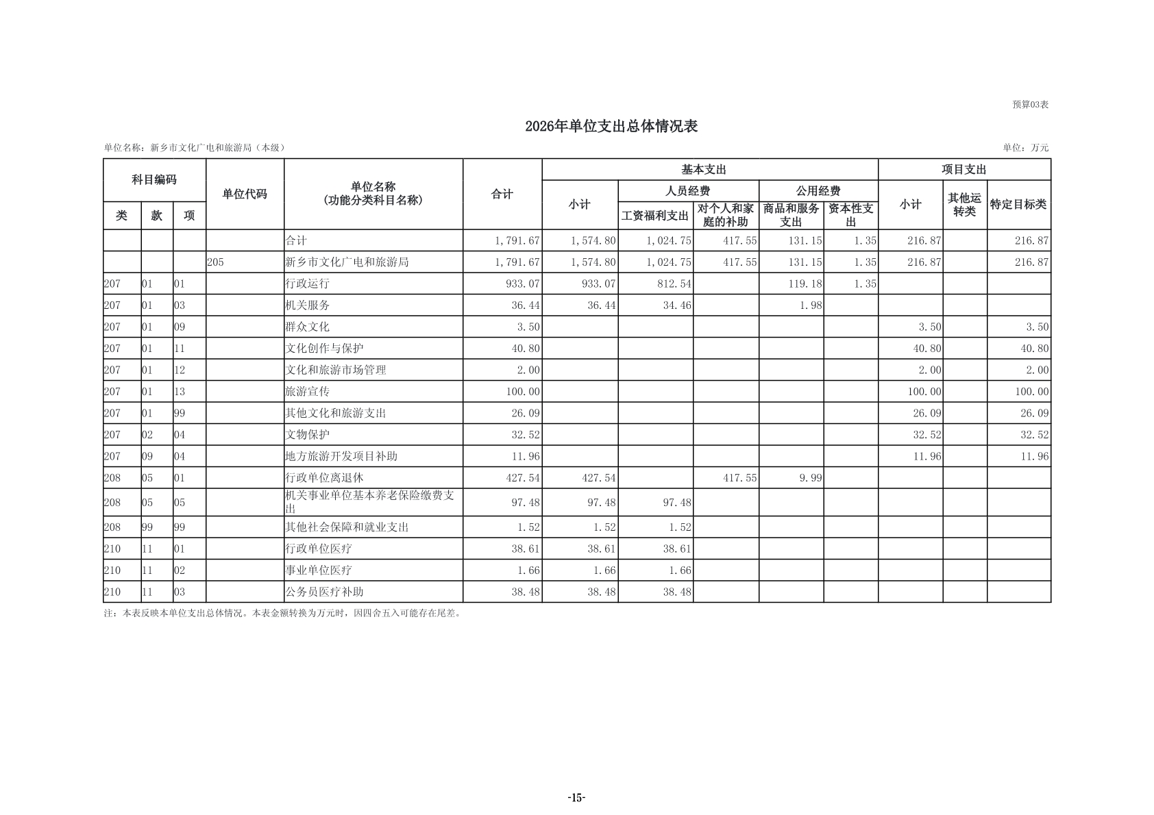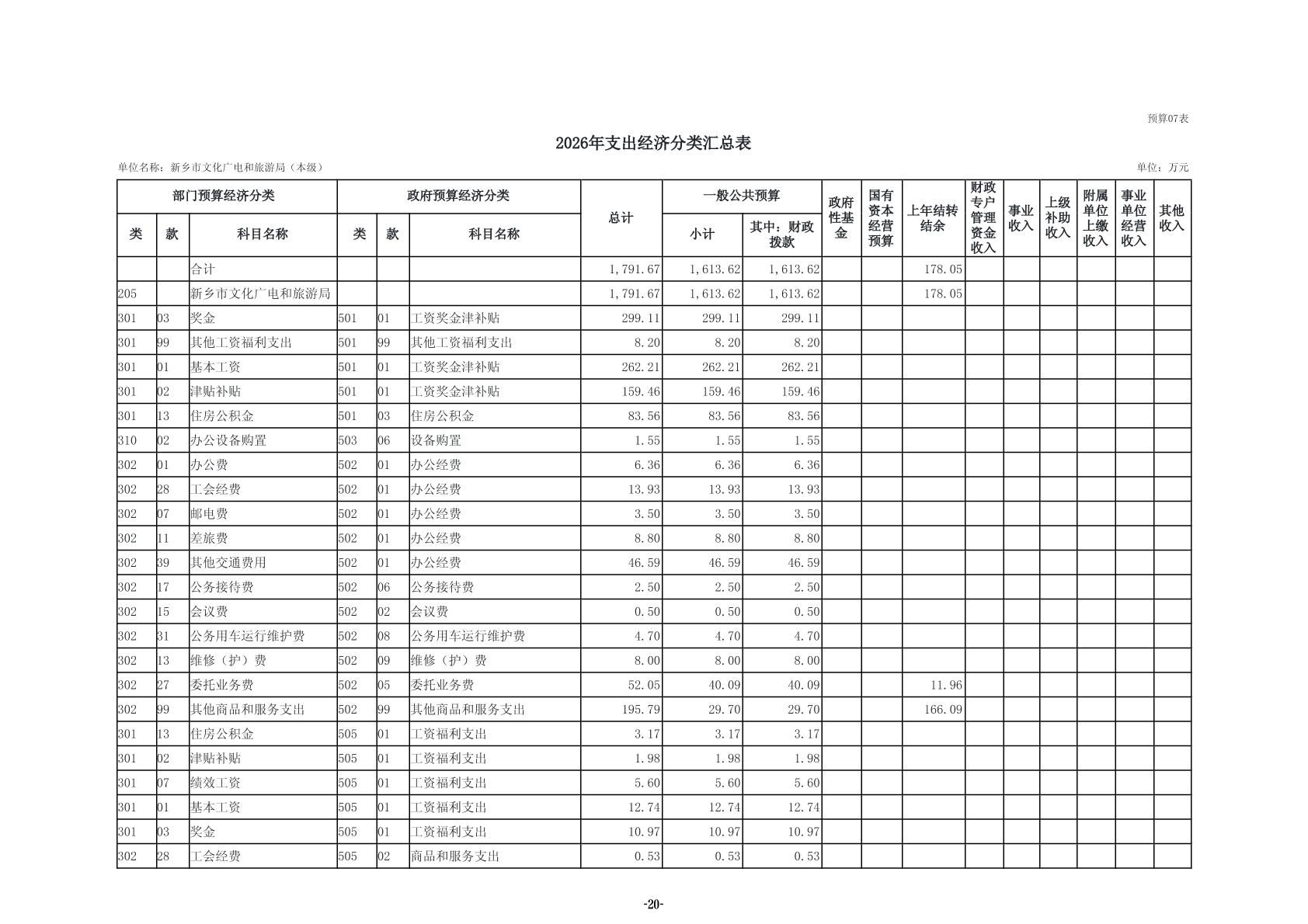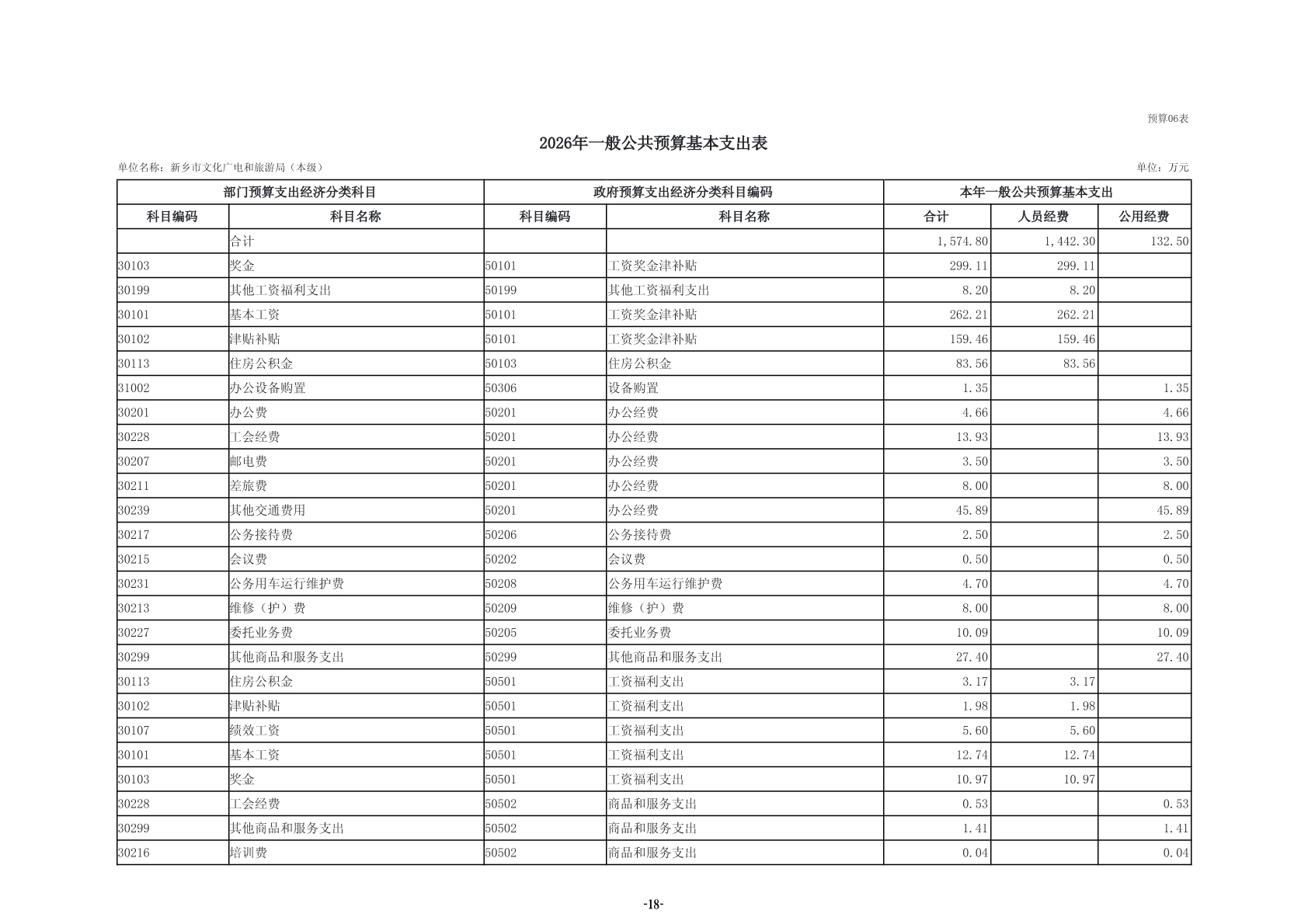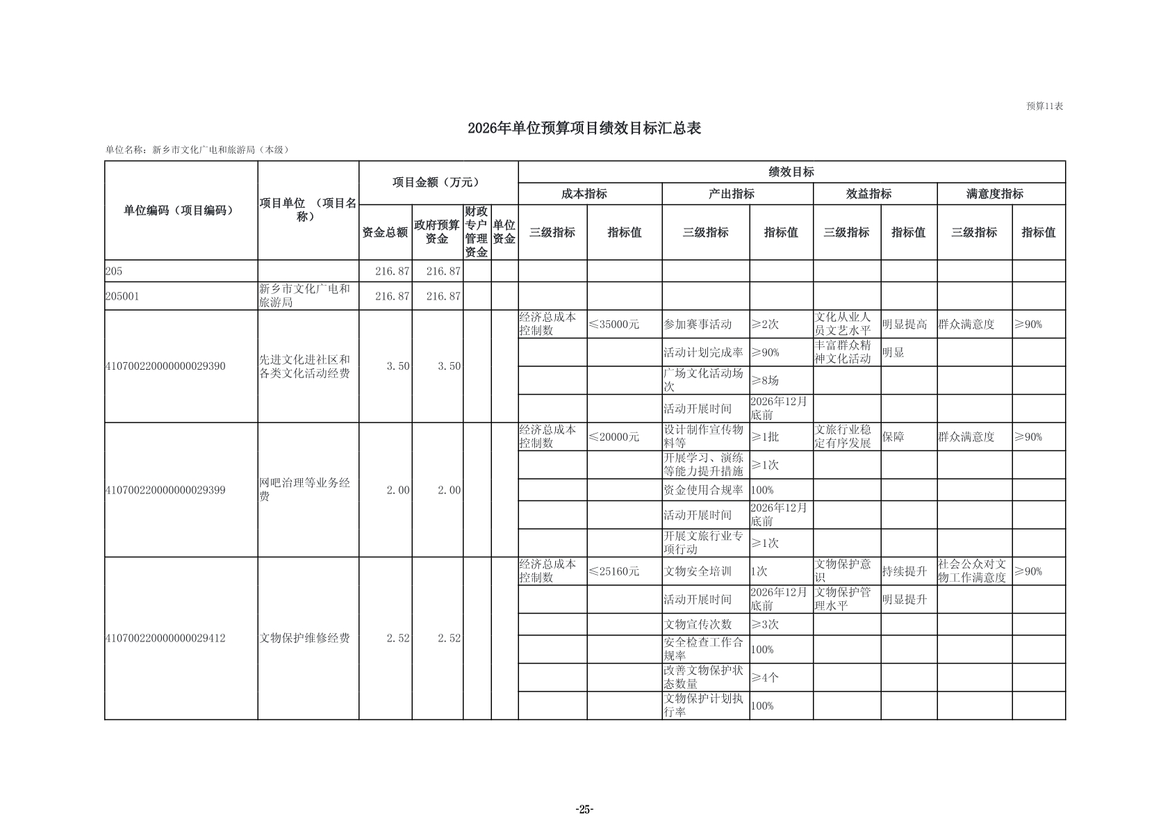 2026年度新乡市文化广电和旅游局(本级)单位预算