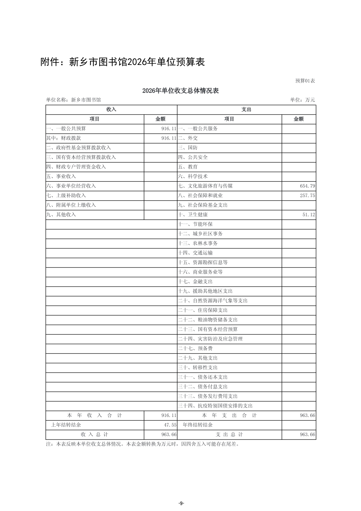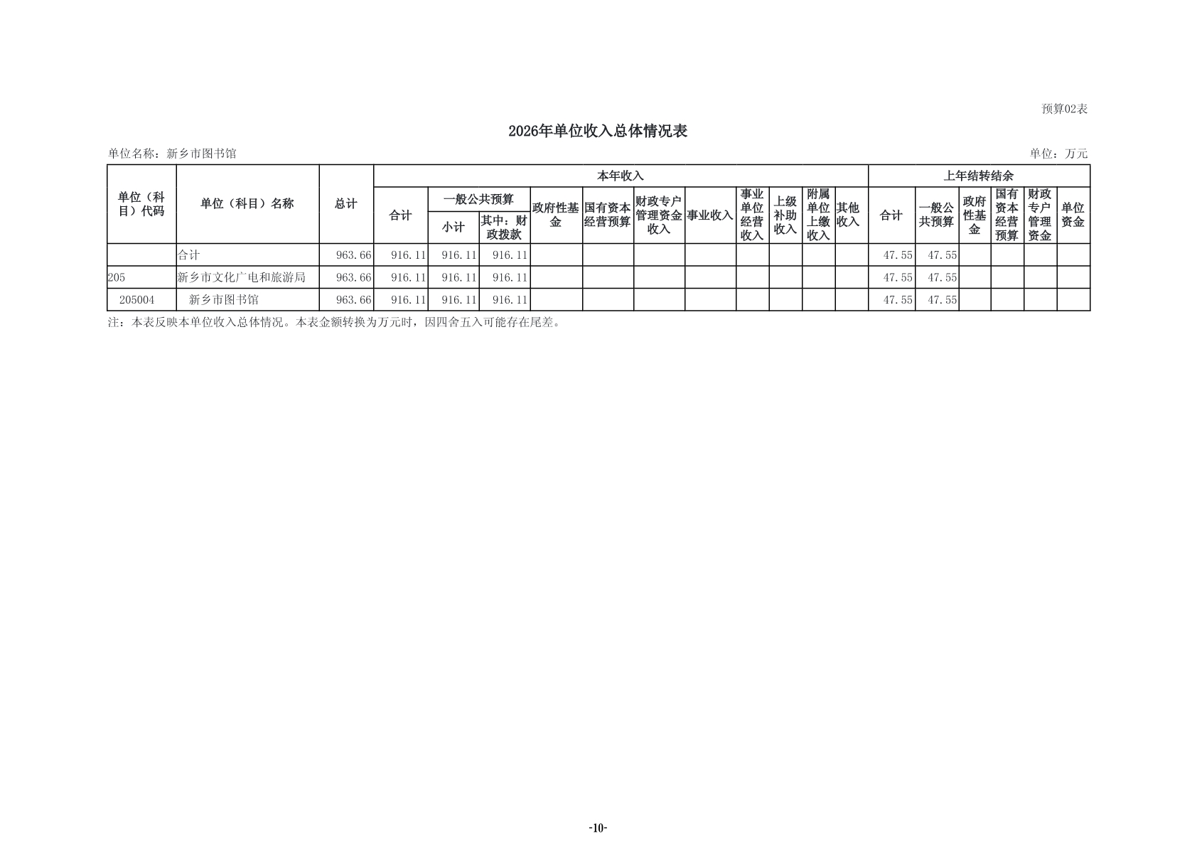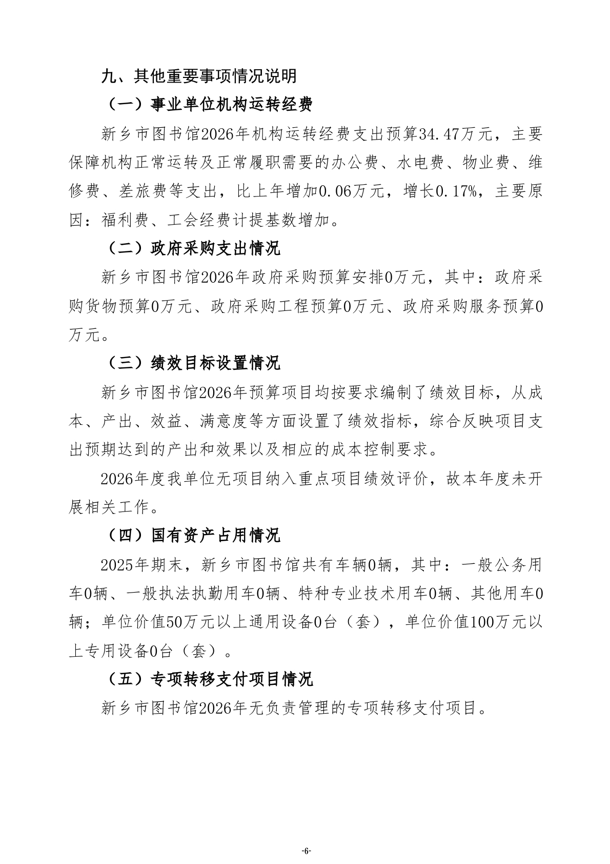 2026年度新乡市图书馆单位预算