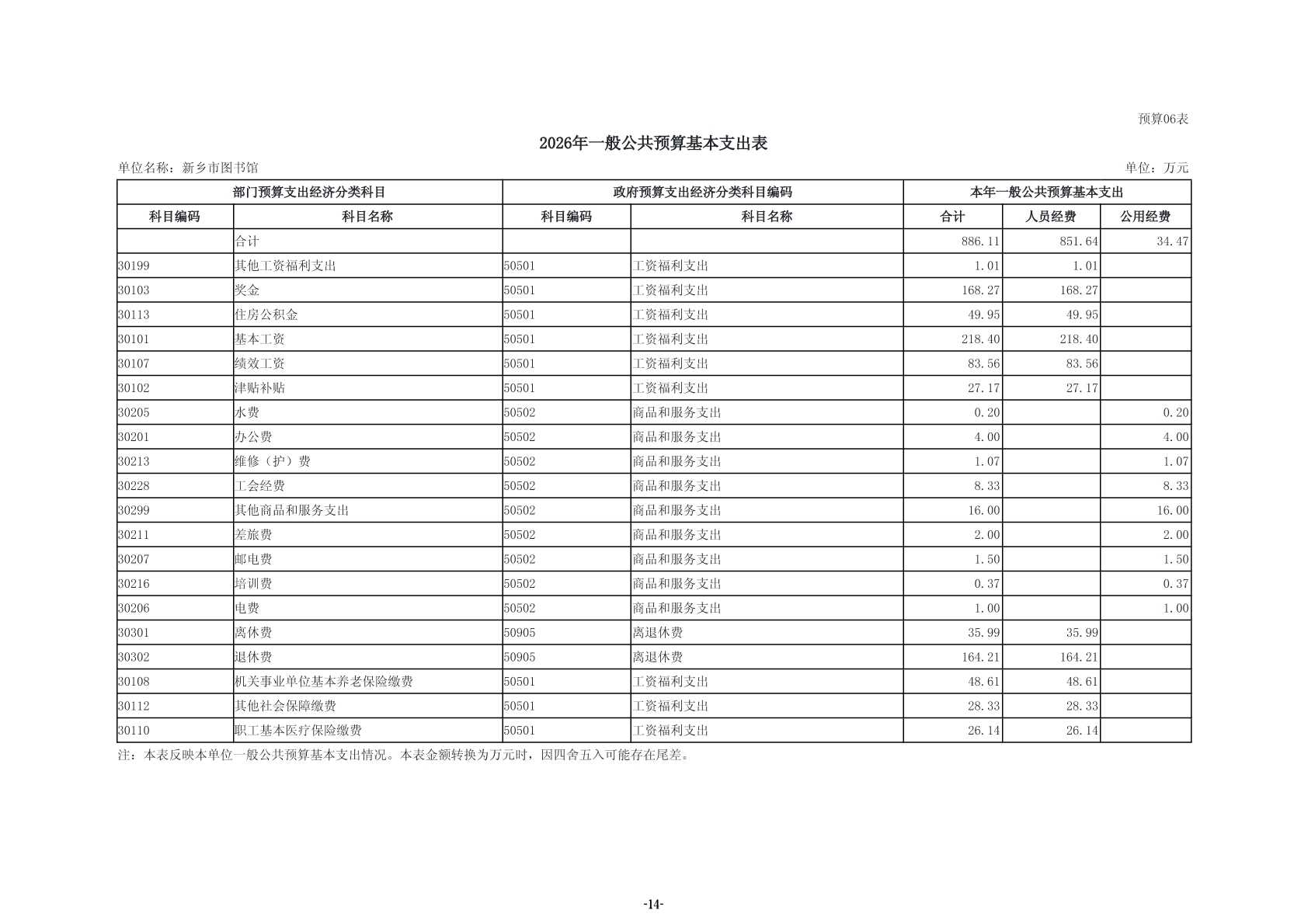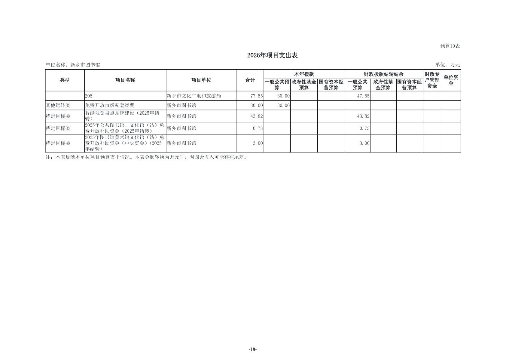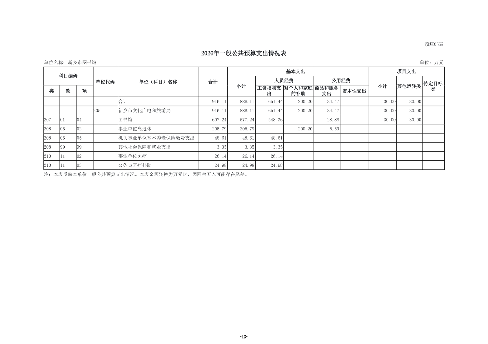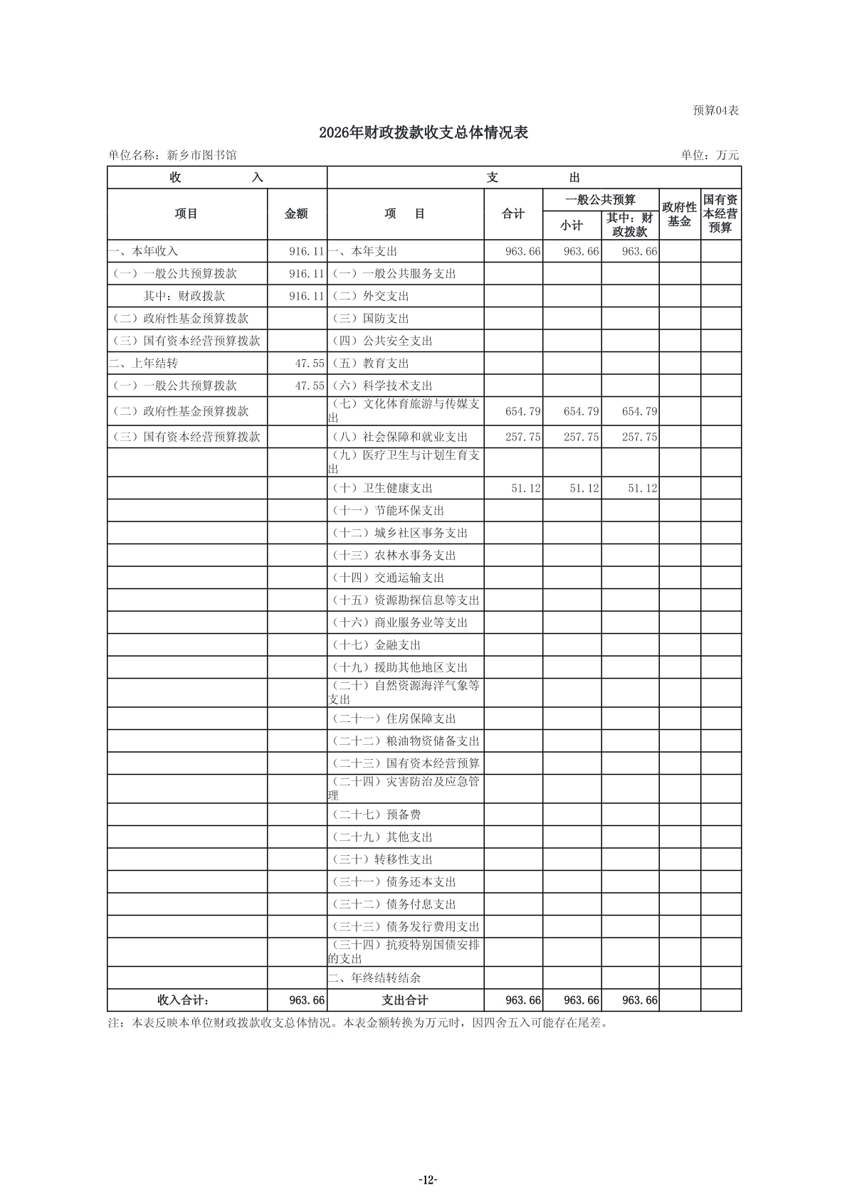 2026年度新乡市图书馆单位预算